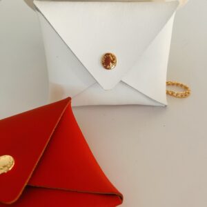 • δερμάτινο πορτοφολάκι με χρυσή αλύσίδα σε ρουά χρώμα