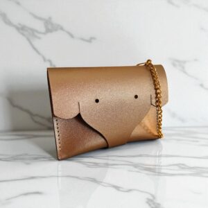Δερμάτινο πορτοφολάκι-ελεφαντάκι με αλυσίδα σε ροζ χρυσό χρώμα