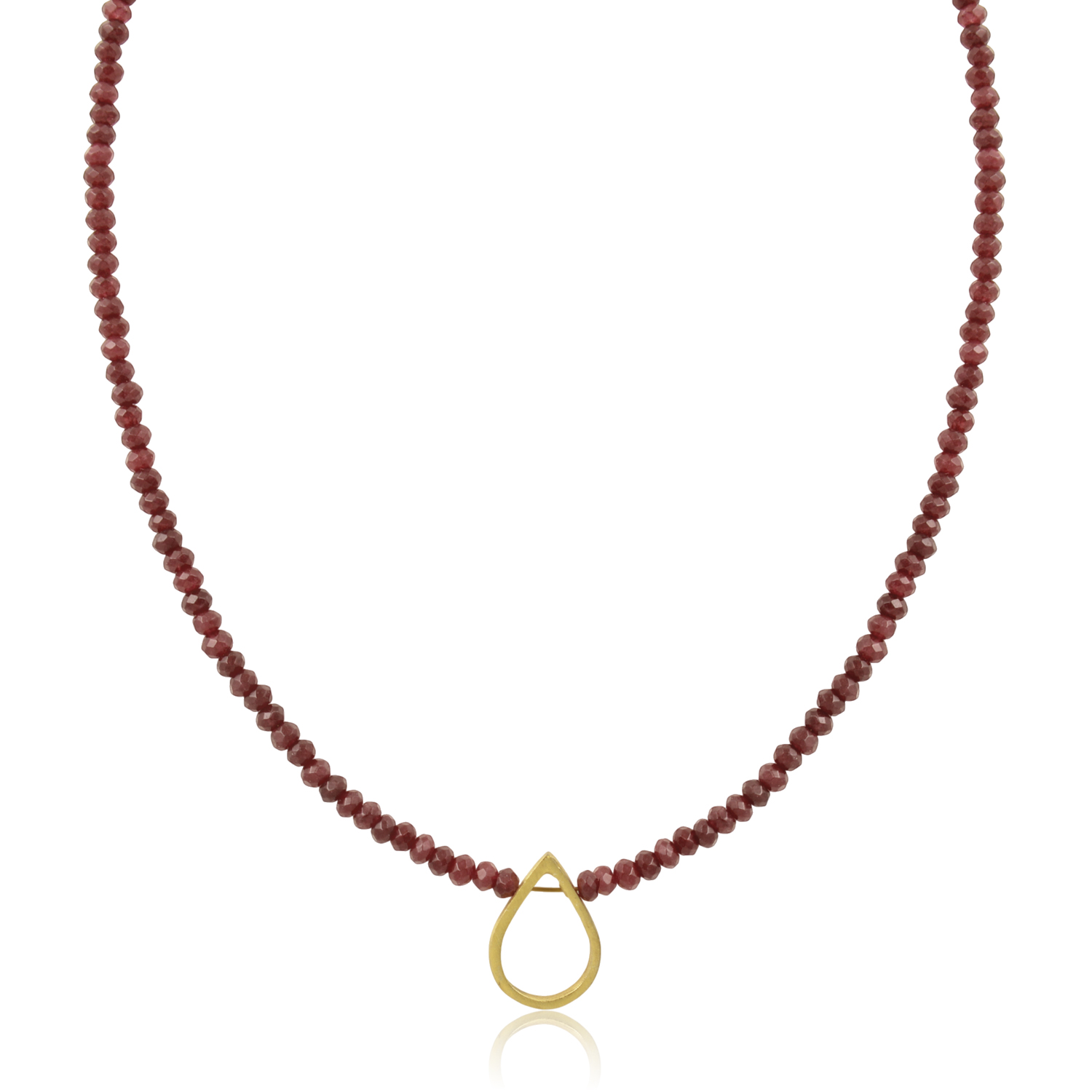 Κολιέ επιχρυσωμένο με ημιπολύτιμο λίθο Νεφρίτη-Jade σε ruby απόχρωση και διακριτικό charm στοιχείο από ασήμι 925.