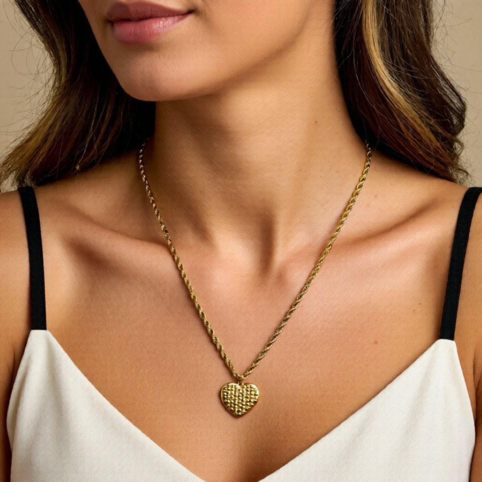 Ένα εντυπωσιακό κολιέ με μακρυά, ιδιαίτερη αλυσίδα που αποπνέει μοντέρνα κομψότητα. Το επιχρυσωμένο ατσάλινο charm σε σχήμα καρδιάς προσδίδει μια ρομαντική πινελιά, καθιστώντας το ιδανικό για να αναδείξει οποιοδήποτε σύνολο. Η ανθεκτική και στιβαρή κατασκευή της αλυσίδας εξασφαλίζει μακροχρόνια χρήση, ενώ το λαμπερό φινίρισμα του επιχρυσωμένου ατσαλιού προσφέρει μια πολυτελή αίσθηση. Αυτό το κολιέ είναι τέλειο για layering ή για να φορεθεί μόνο του ως statement piece.
