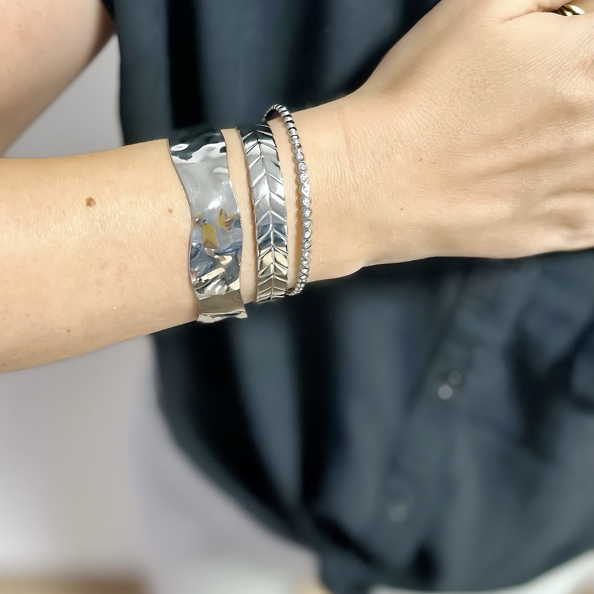 Elina – Βραχιόλι χειροπέδα με κυματισμό σε ασημί χρώμα