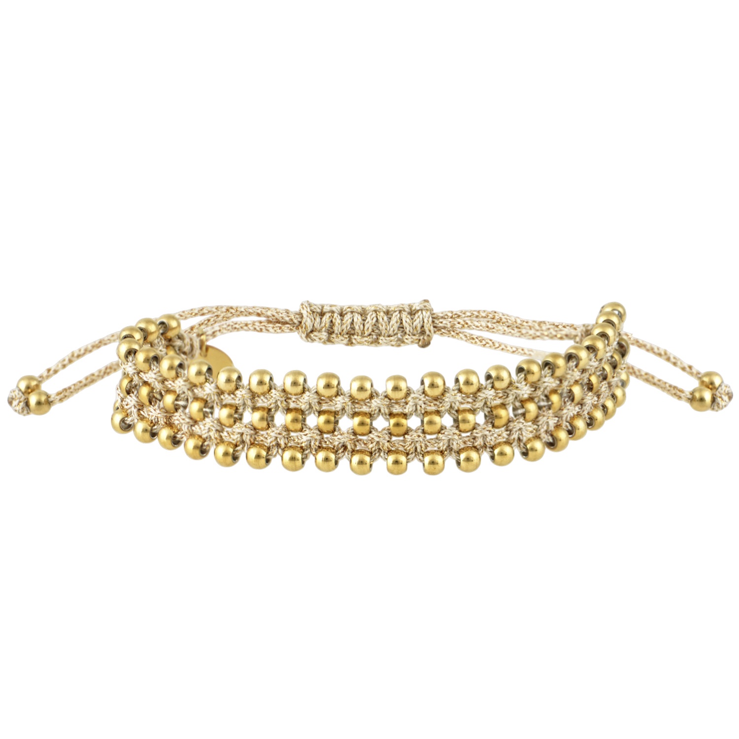• Μπεζ πλεκτό κορδόνι με χρυσά ατσάλινα στοιχεία: Ζεστός, γήινος συνδυασμός που προσδίδει φινέτσα και ταιριάζει τέλεια με ανοιχτόχρωμα outfits.
