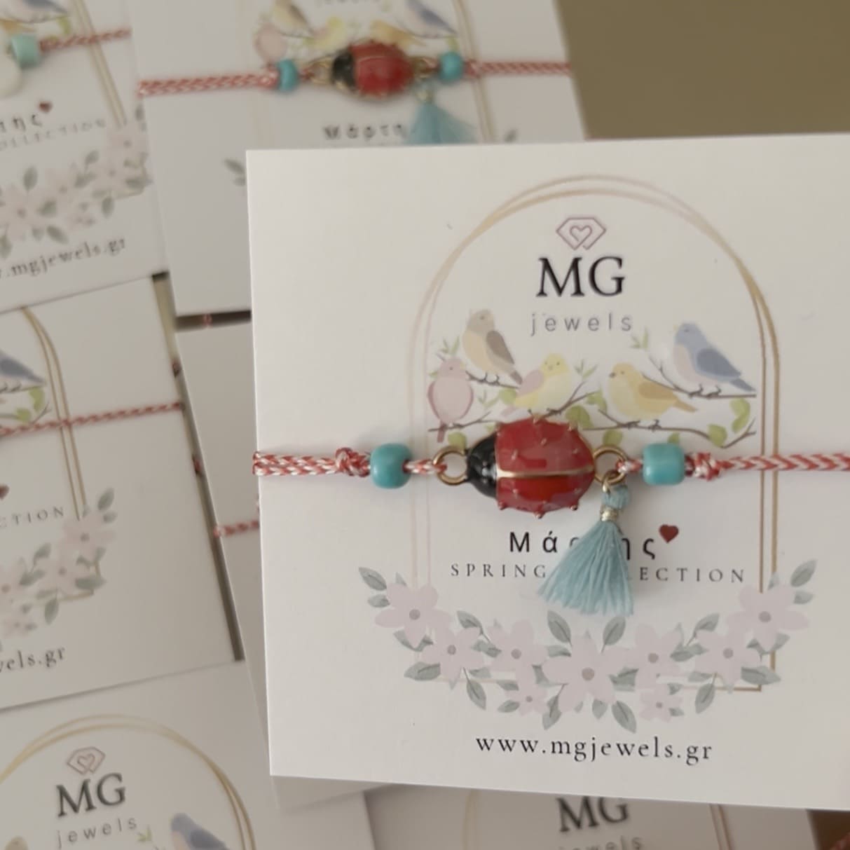 Υποδεχτείτε την άνοιξη με στυλ και παράδοση! Το Μαρτάκι του MG Jewels συνδυάζει το κλασικό κόκκινο-λευκό νήμα με μια παιχνιδιάρικη διάθεση. Η λεπτομερής πασχαλίτσα στο κέντρο φέρνει καλή τύχη, ενώ οι τιρκουάζ λεπτομέρειες και η φουντίτσα δίνουν μια μοντέρνα boho αίσθηση στο κόσμημα.