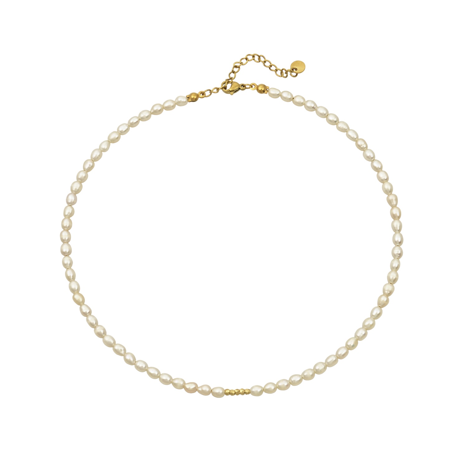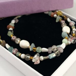 Κολιέ με φυσικά μαργαριτάρια και επιχρυσωμένα στοιχεία από ασήμι 925, που ολοκληρώνεται με υποαλλεργικό κούμπωμα από ανοξείδωτο ατσάλι (stainless steel). Τα μαργαριτάρια συμβολίζουν καθαρότητα, ηρεμία και κομψότητα, ενώ προσφέρουν εσωτερική ισορροπία και αρμονία. Τα επιχρυσωμένα στοιχεία από ασήμι 925 προσδίδουν πολυτέλεια και διαχρονικό στυλ. Μια εκλεπτυσμένη επιλογή για κάθε περίσταση, ιδανική και για ευαίσθητες επιδερμίδες.