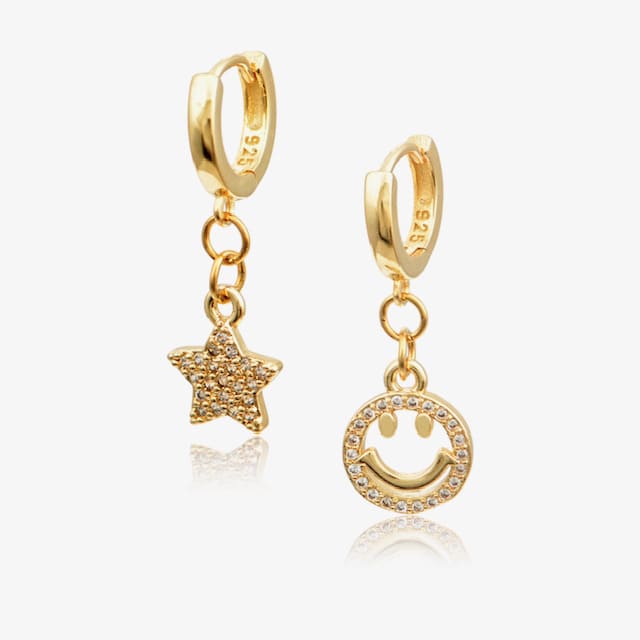 Smile mini hoops – Σκουλαρίκια κρίκοι σε σχήμα χαμόγελο και αστέρι με ζιργκόν ασήμι925
